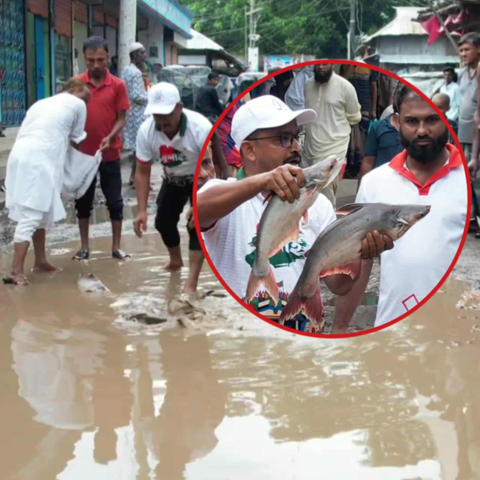 বরগুনা সদর উপজেলার গৌরীচন্না–ফুলঝুড়ি সড়কের বেহাল অবস্থা, জুলাই যোদ্ধার মাছ চাষে জনদুর্ভোগ চরমে